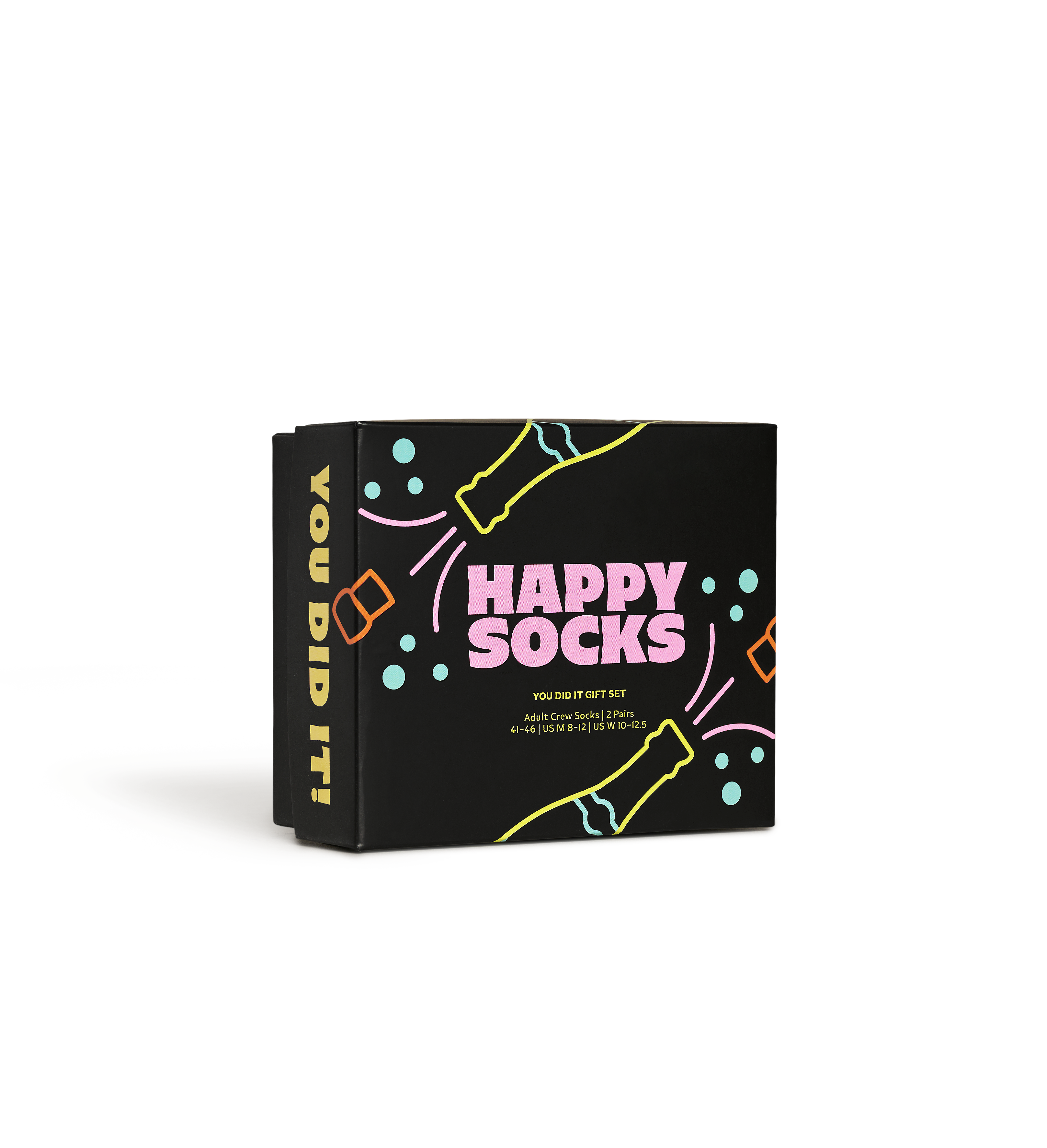 You did it, didn't you? You really did. Congrats! Get your party on with balloons and champagne. Made from soft and breezy combed cotton, and with reinforced toe and heel. Celebrate life's triumphs with the 2-Pack You Did It Socks Gift Set, featuring vibrant confetti-inspired designs that add a playful touch to any occasion. With a mix of bright colors and lively patterns, these fun socks are perfect for dressing up or dressing down. At Happy Socks, w believe in color, creativity, and fun! Whether you're treating yourself or gifting someone special, this set of two pairs offers endless styling options to match your unique personality. Perfect gift for: graduates and achievement celebrants.