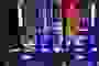 Two people wearing Happy Socks gaming socks while on an arcade platform.