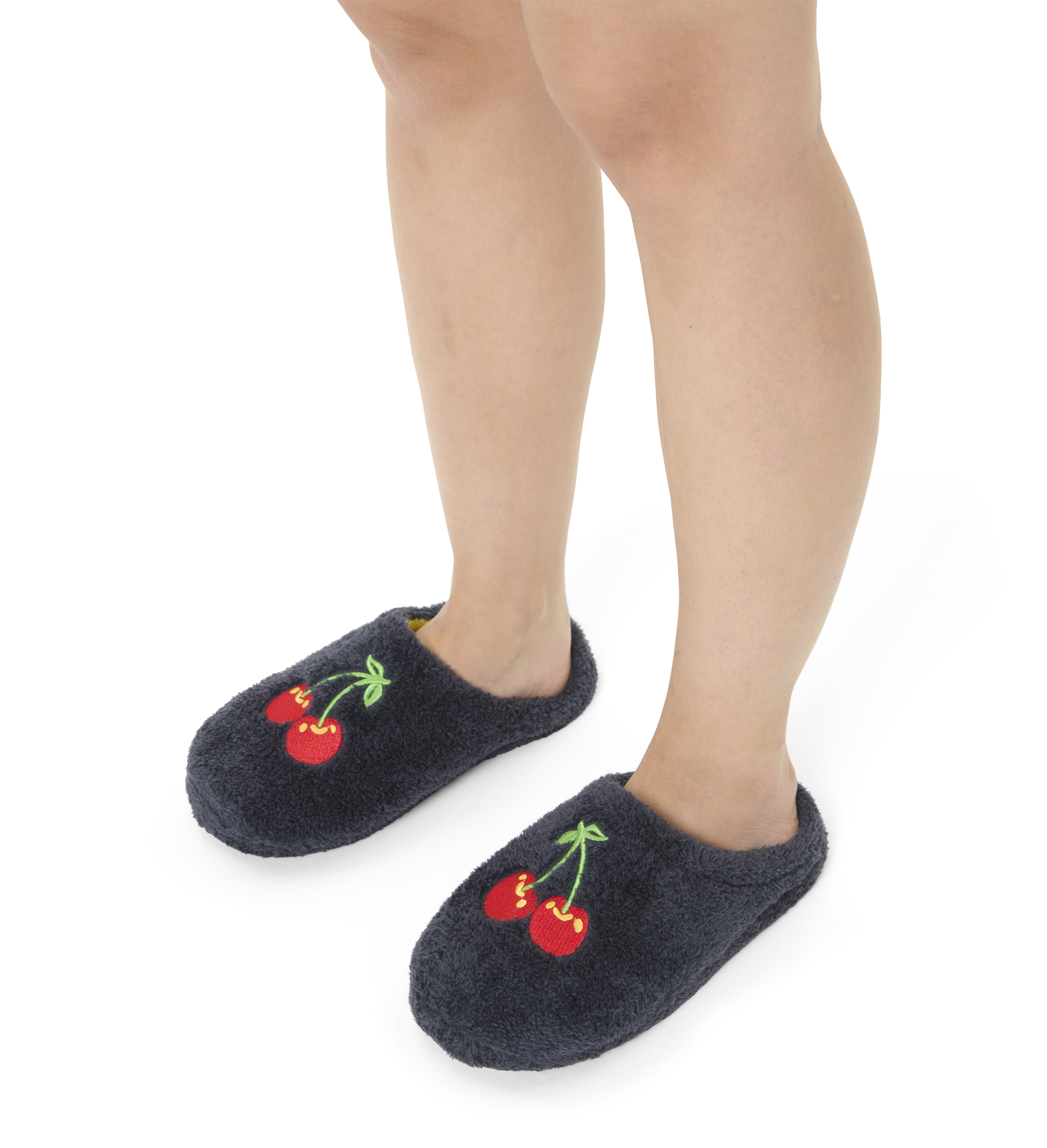 Lounge in style with the Cherry Slipper, the perfect treat for a comfy afternoon. This fluffy, dark blue slipper is easy to wear and nice on your feet. Just the perfect, tasteful addition to your slipper collection.