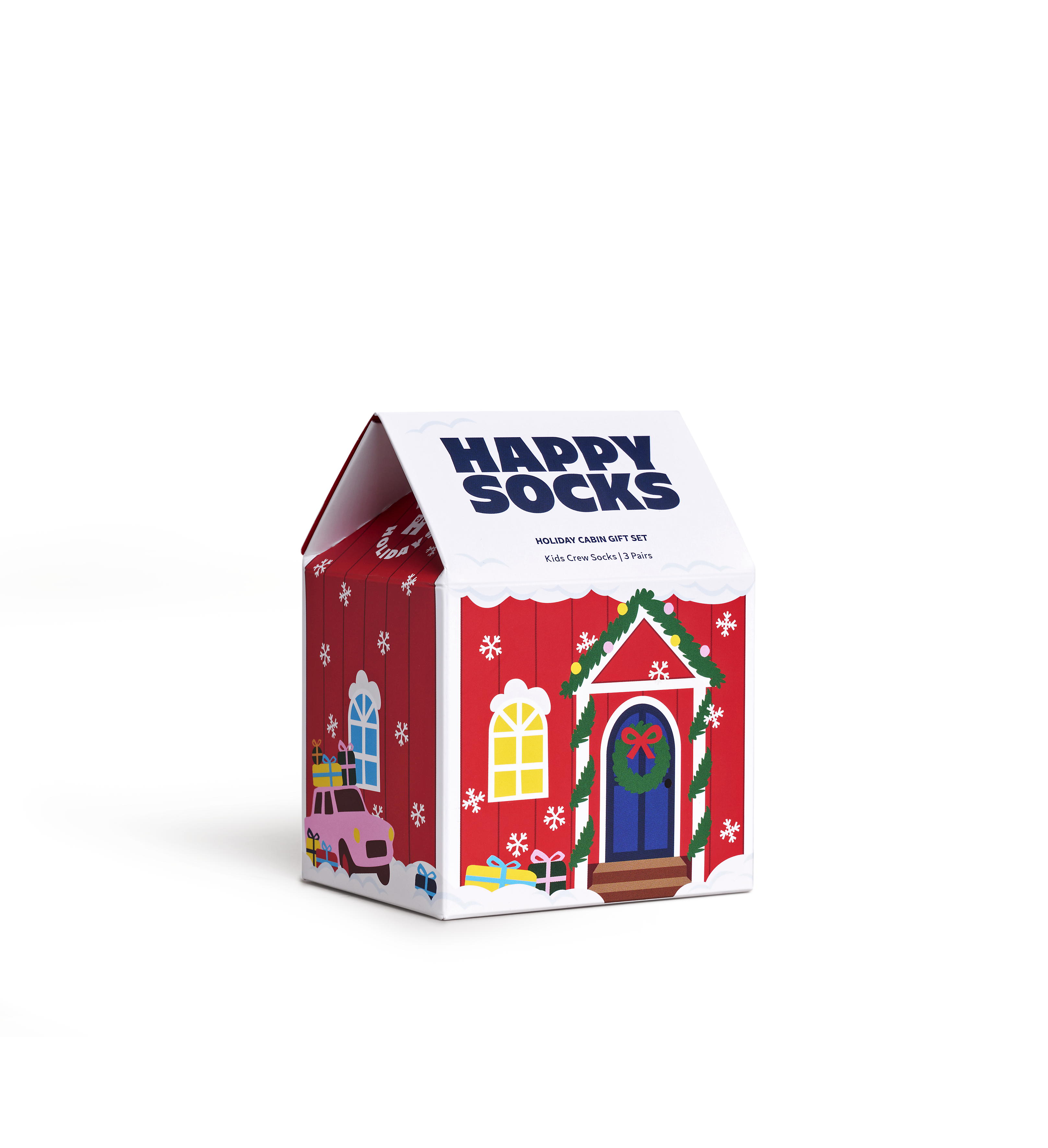 Let's go on a snowy retreat into the mountains, and sleep safely in our cabin. It's time for some seasonal adventures with this 3-pack Holiday Cabin Gift Set. The Kids 3-Pack Holiday Socks Gift Set is a festive bundle of fun, featuring three unique designs that evoke the magic of the winter season. With a mix of snowflakes, trees, and cozy cabin scenes, these kids' Christmas socks are sure to delight little ones. At Happy Socks, we believe in color, creativity, and fun! This set is perfect for adding a pop of holiday cheer to their wardrobe, and the variety of designs ensures they can match their mood and outfit. The set's compact packaging makes it an ideal stocking stuffer or gift for kids who love the holidays. Perfect gift for: little holiday enthusiasts.